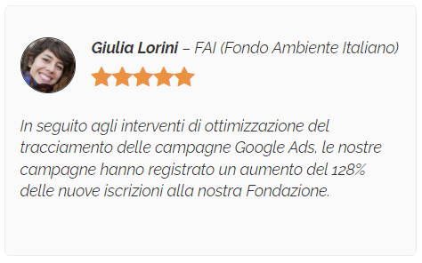L'ottimizzazione del tracciamento delle campagne Google Ads ci ha permesso di aumentare del 128% delle nuove iscrizioni alla nostra Fondazione.