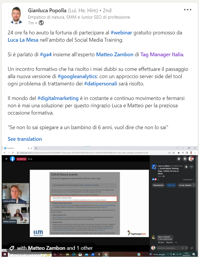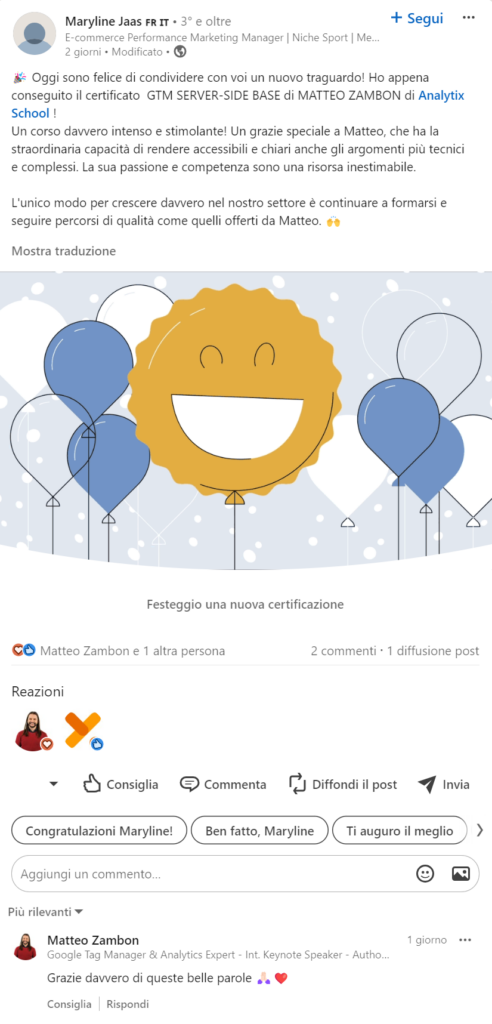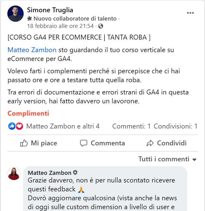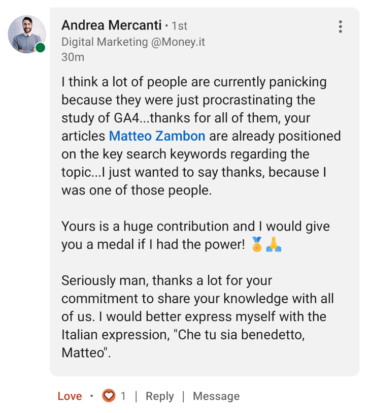 Per me Tag Manager Italia e Matteo Zambon sono LA fonte quando si parla del mondo Analytics e dati.
