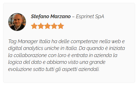 Tag Manager Italia ha delle competenze nella web e digital analytics uniche in Italia. Grazie a loro è entrata in azienda la logica del dato e abbiamo visto una grande evoluzione sotto tutti gli aspetti aziendali.
